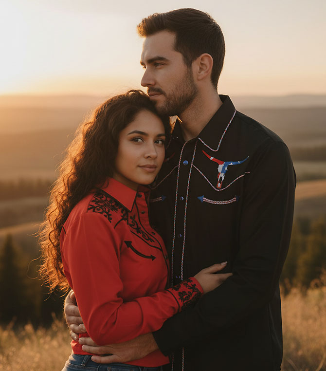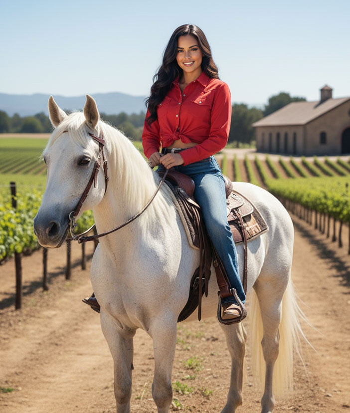 El General Women’s Long Sleeve Western Shirt - Red Stretch 45620