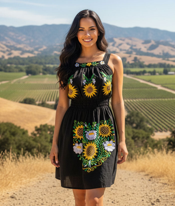 Artisanal Embroidered Dress 100% Cotton Black 603101