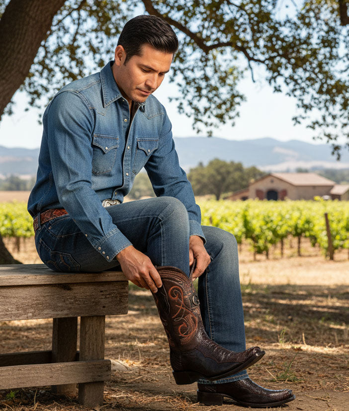 El General Men's Exotic Python Rodeo Boots - Black 45503